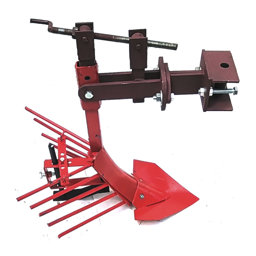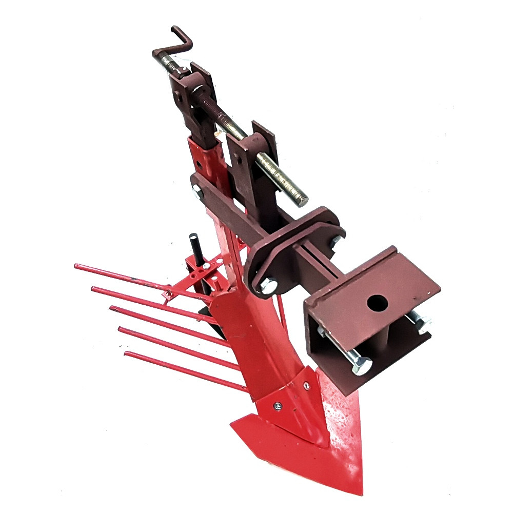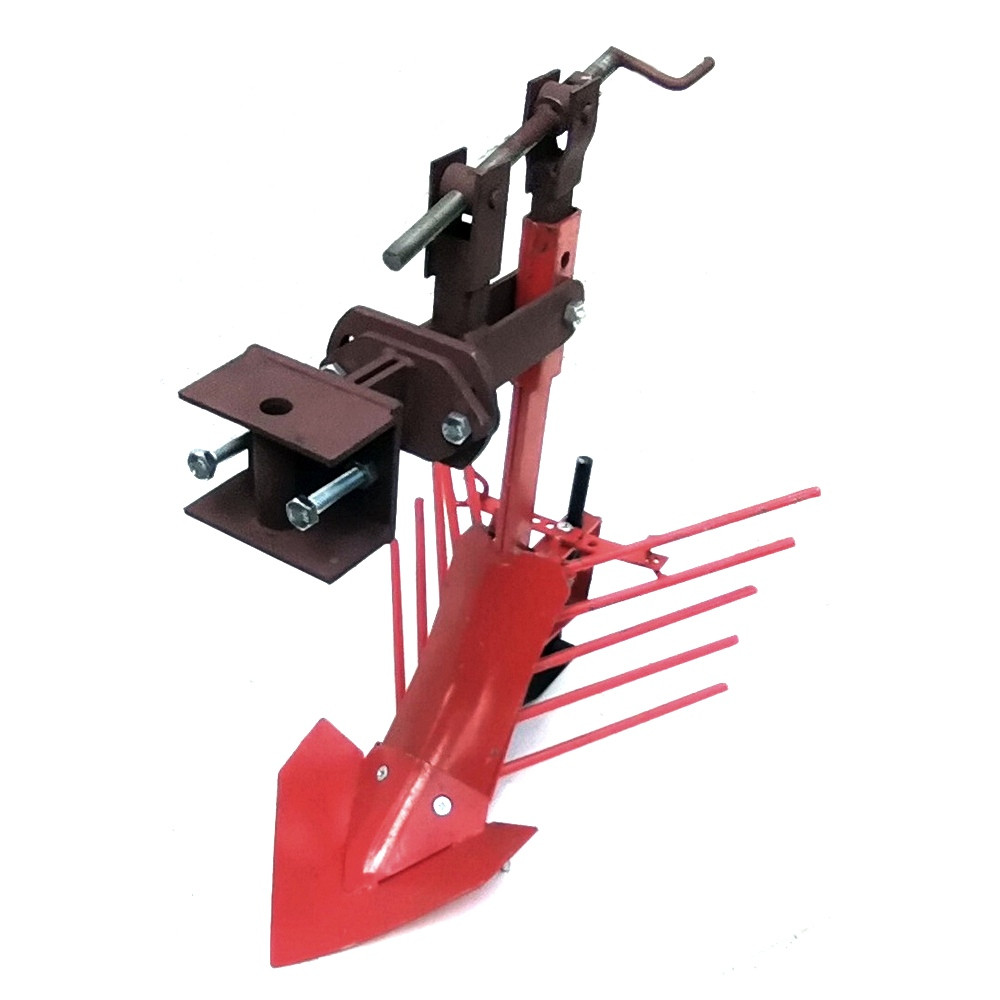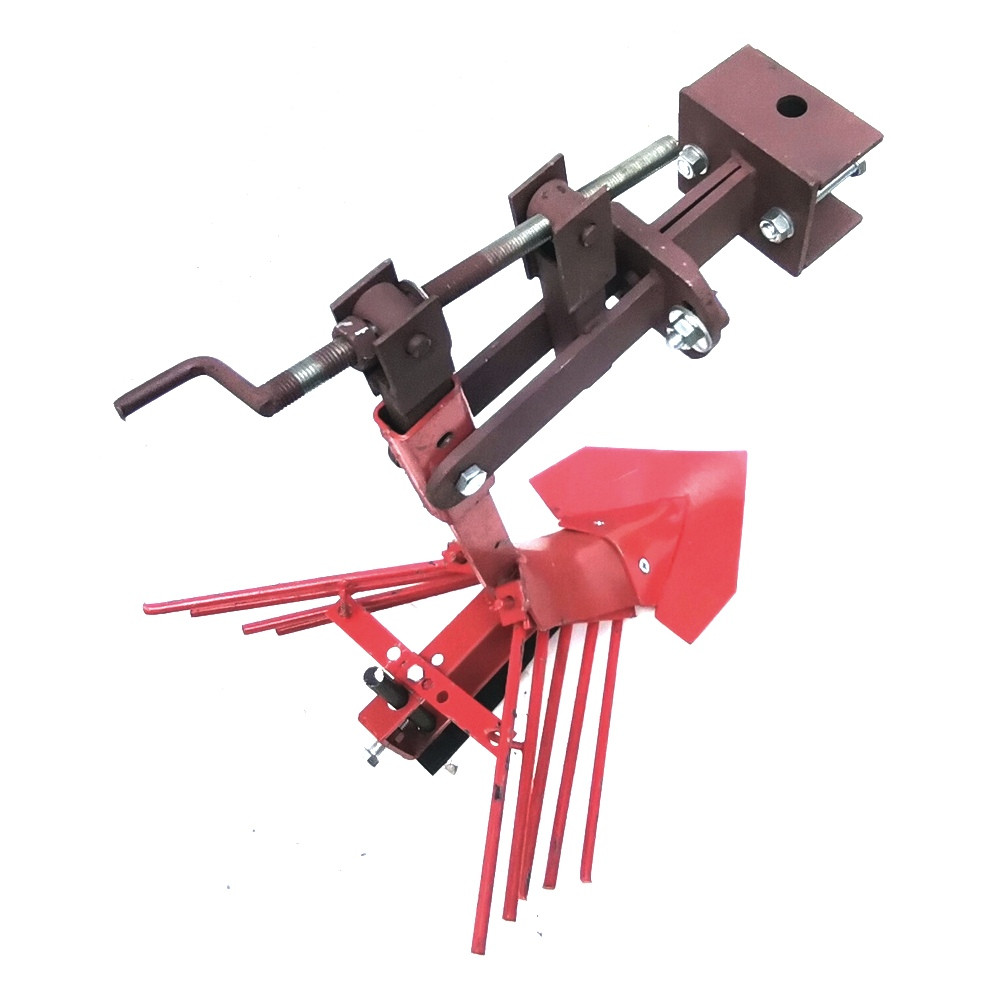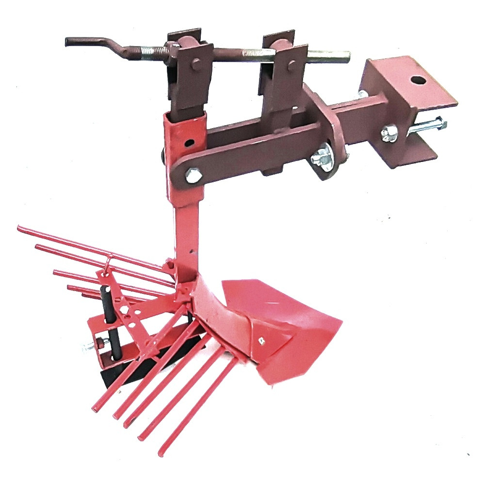 Картофелевыкапыватель К-1 агрегатируется к мотоблоку и мини-трактору при помощи универсальной сцепки, за счет которой его можно регулировать в трех плоскостях.